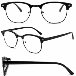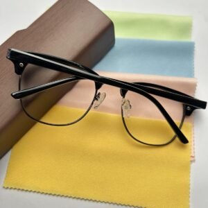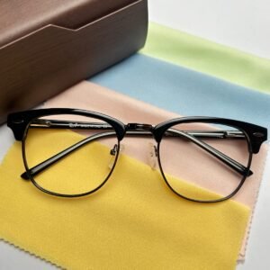 Upgrade your style with these premium black and silver clubmaster eyeglasses, designed for both men and women. Featuring a modern half-rim design, these frames combine a bold black acetate top with a sleek silver metal bottom for a timeless and sophisticated look.
