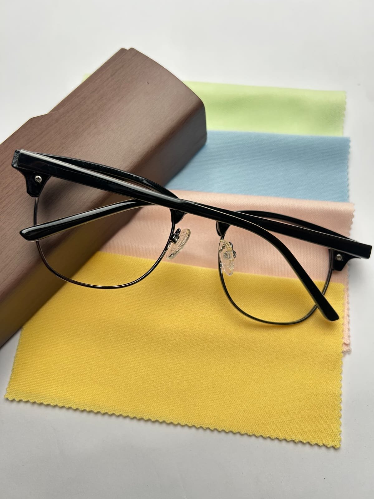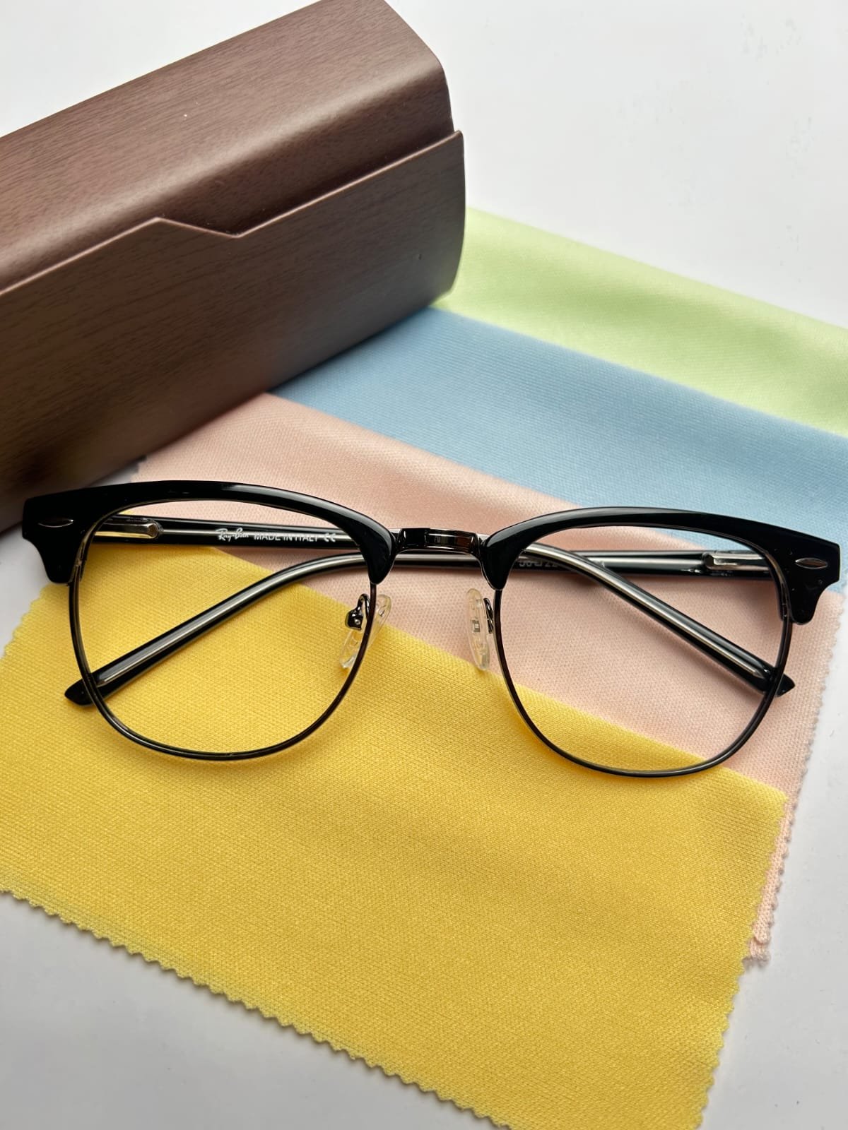 - Classic clubmaster (half-rim) design